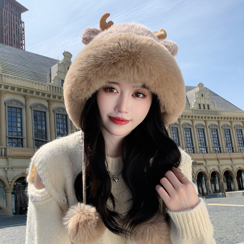 CUTE EARFLAP BEANIE CAP:The cute hooded beanie hat for women is adorned with cute reindeer antlers and furry 3 pom pom balls, adding a sweet and attractive touch to your look,earflap hood skull caps, protect your head face and ears. Just perfect and also makes you smile whenever you wearing it!