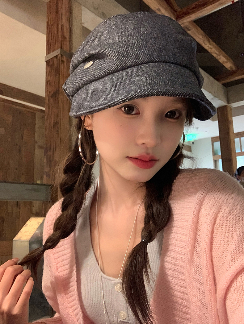 Retro pleated beret for women, autumn and winter, versatile newsboy cap, face-slimming octagonal painter's hat