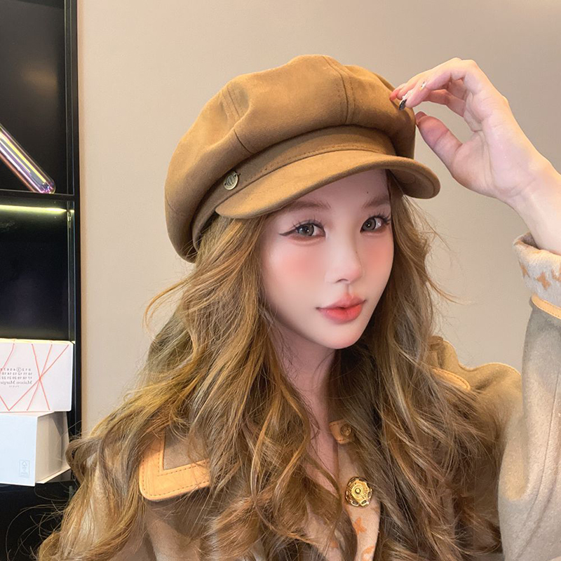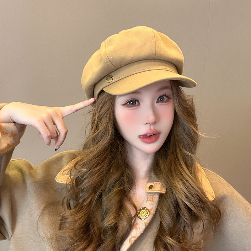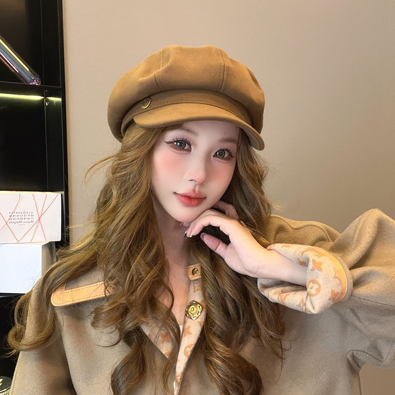 Women's Autumn/Winter Japanese Style Versatile Wool Beret Hat, Suitable for Large Head Sizes, Makes Face Look Smaller, Warm Painter/Newsboy Hat