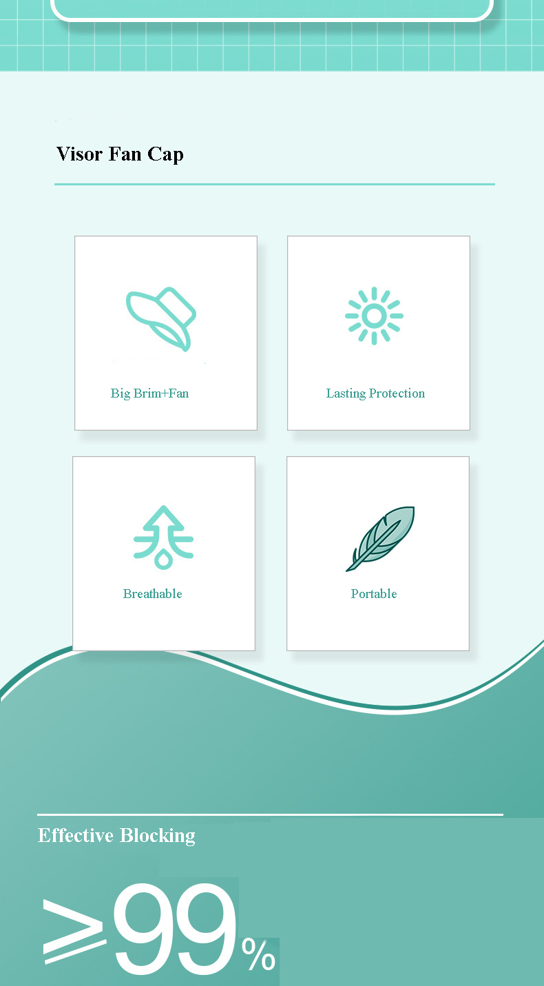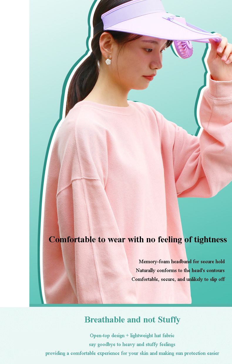• Elegant Design: it combines sun visors with a fan, which means you can travel anywhere and feel cool without having to hold a fan in your hand, which makes you feel relaxed and shaded in the summer heat.