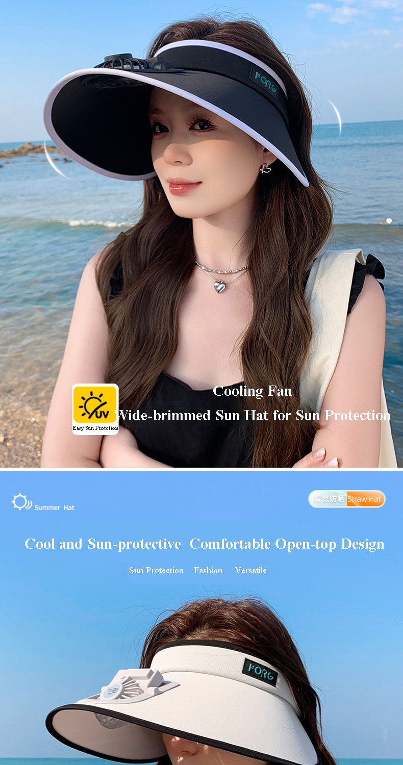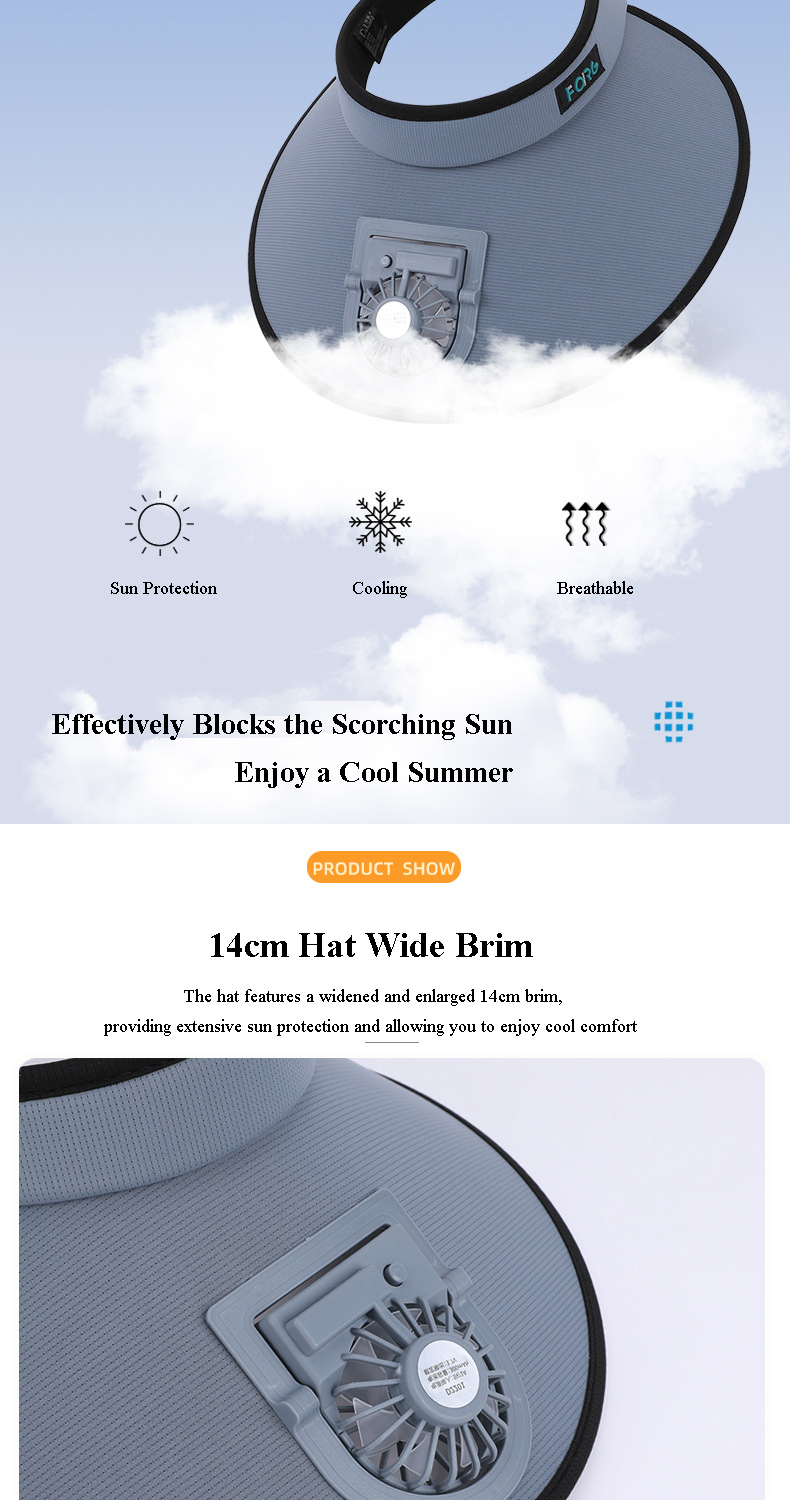 Fan Visor Hat : Fan Visor Hats made of Pvc material, odorless, fit forehead part with soft absorbent material, sweat absorption and non-slip. (Note: when cleaning the hat fan parts please use a wipe can, not directly soaked in water)