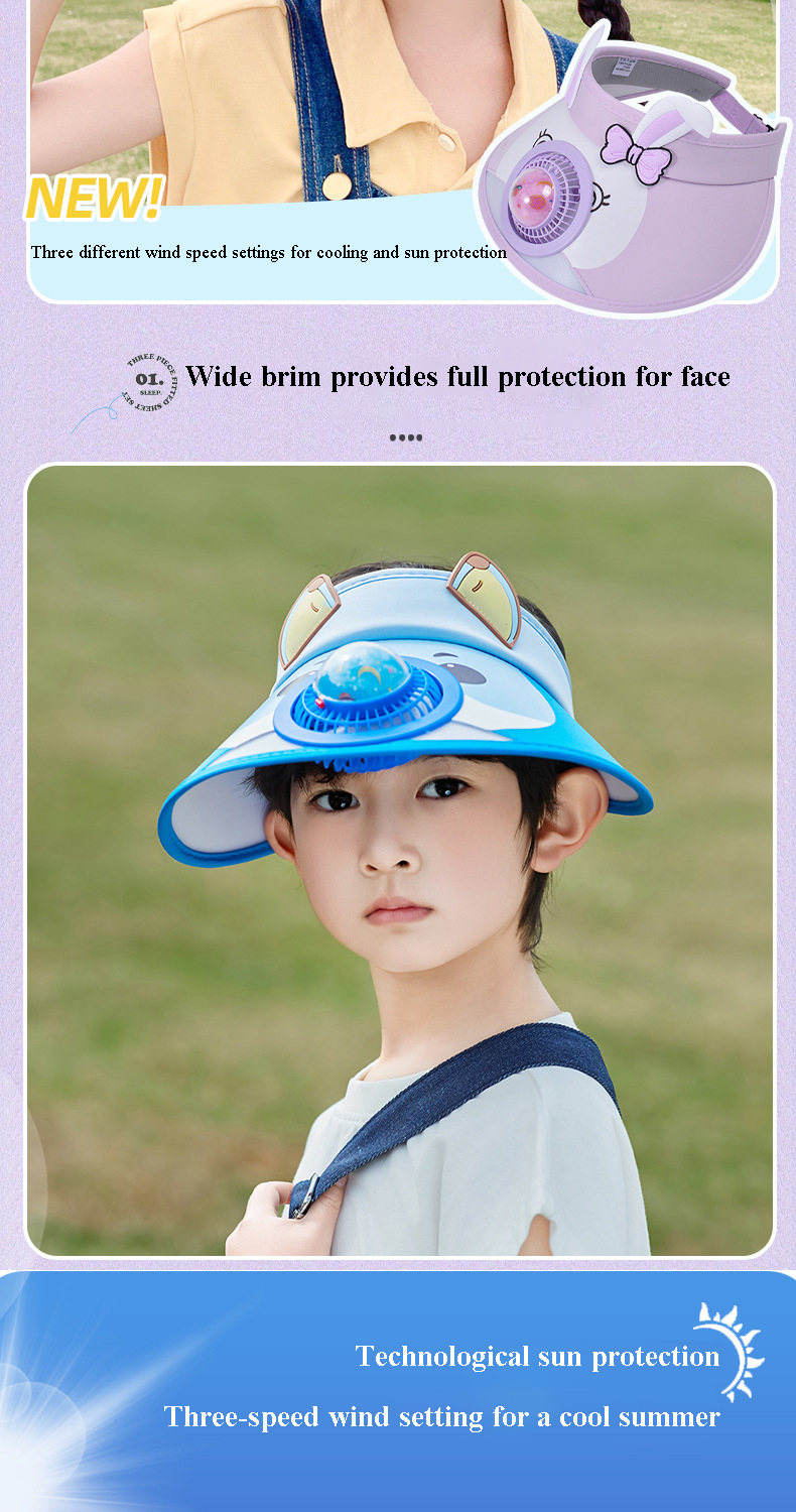 USB Sun Visor Hat:It differs from other visors with fan in that it has three speeds and can work continuously for 3-4 hours on the lowest speed, which is perfectly suited to travel needs and is rechargeable.
