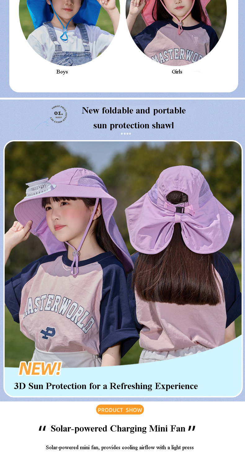 Dual-Power Cooling Fan: Features a solar and USB rechargeable fan for instant breeze—perfect for keeping kids cool during hot summer days; simply charge via sunlight or any USB port for hours of outdoor comfort.