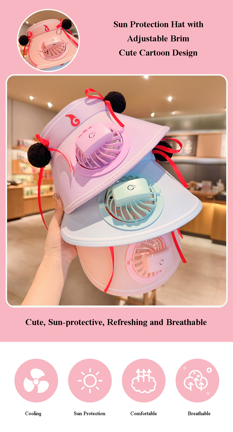 Cooling Fan Hat - Keep your child cool and protected with our innovative Kids' Sun Visor Hat with Built-in Fan. Features a built-in USB charging fan, provides a gentle breeze to keep your kids comfortable and prevent overheating, this hat is perfect for sunny days.