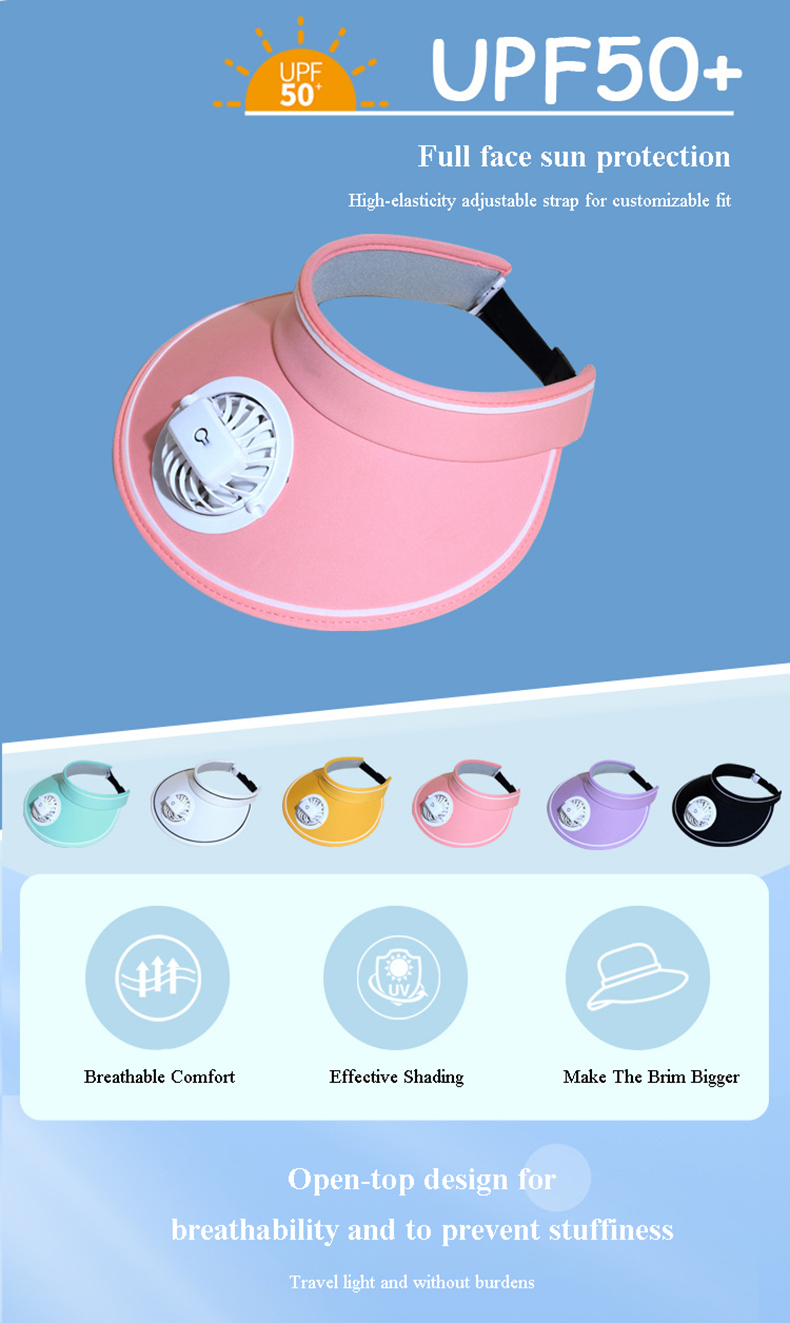 Elegant Design: it combines sun visors with a fan, which means you can travel anywhere and feel cool without having to hold a fan in your hand, which makes you feel relaxed and shaded in the summer heat.