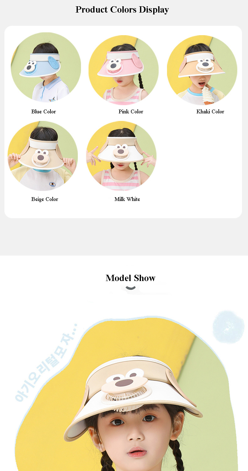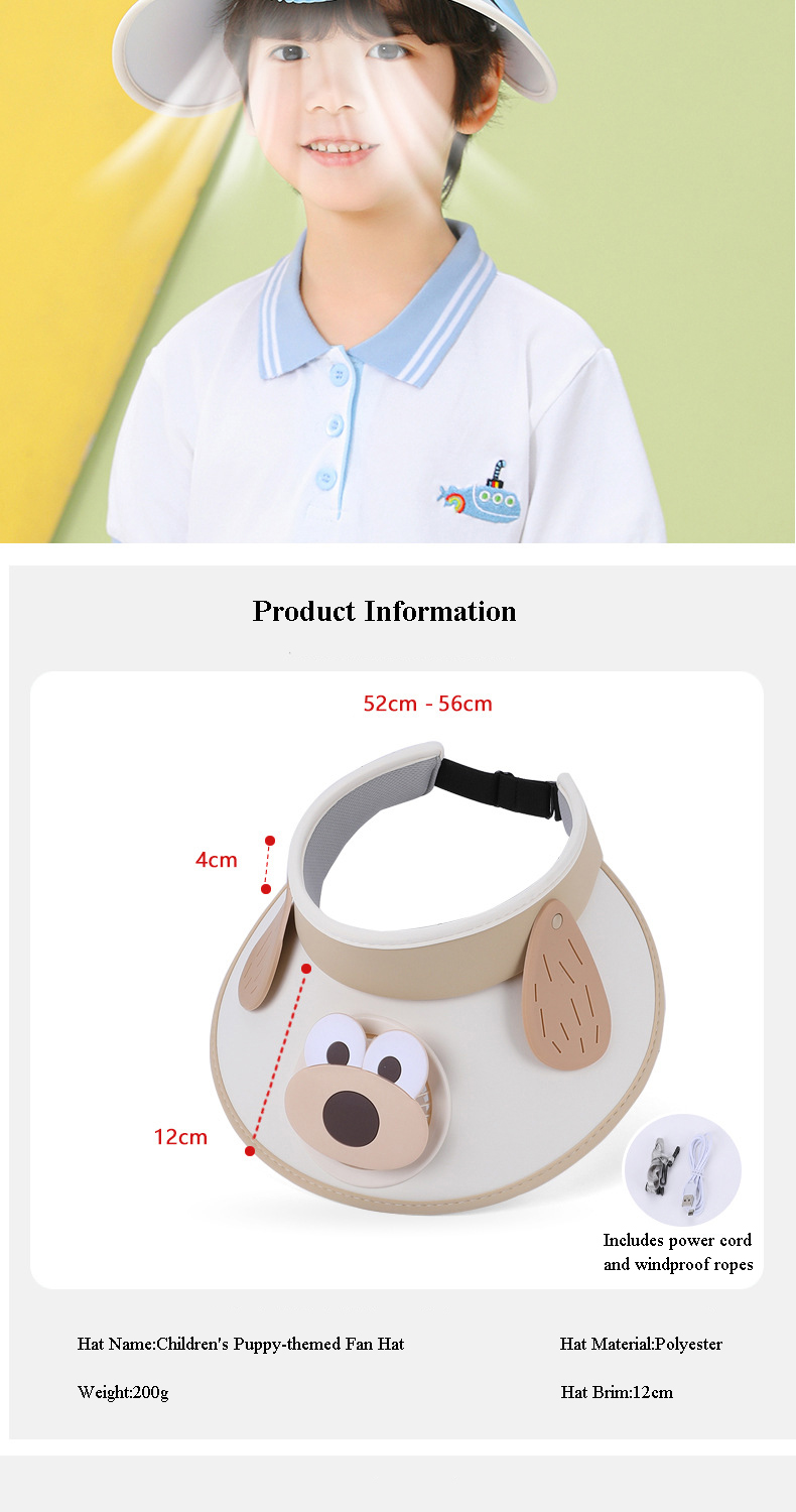 Cooling Fan Hat - Keep your child cool and protected with our innovative Kids' Sun Visor Hat with Built-in Fan. Features a built-in USB charging fan, provides a gentle breeze to keep your kids comfortable and prevent overheating, this hat is perfect for sunny days.