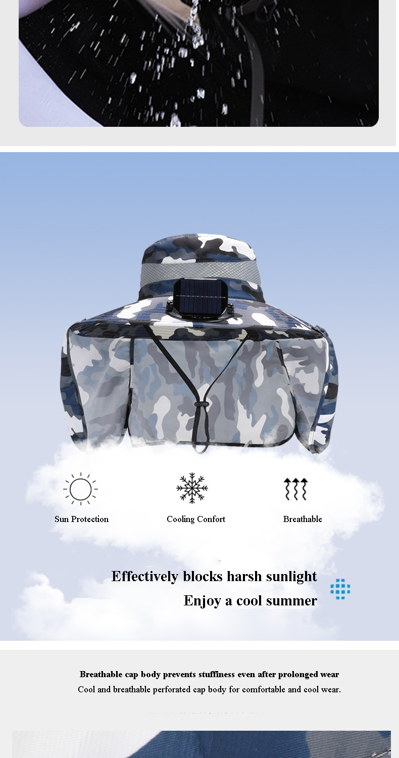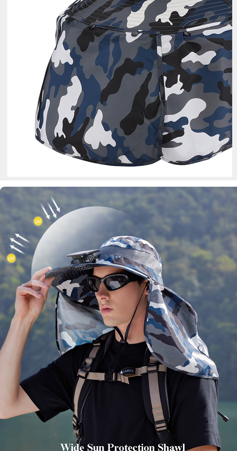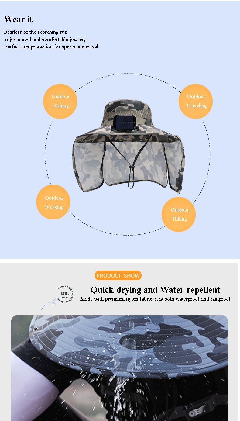 SUN-PROOF FABRIC DESIGN: Our sun hat with fan dries fast and blocks 98% of UV rays when the sun's out. Stylish and protective, it's your perfect companion for sweltering summer heat. Our wide brim outdoor polyester fishing hat could offer brief rain protection for you.
