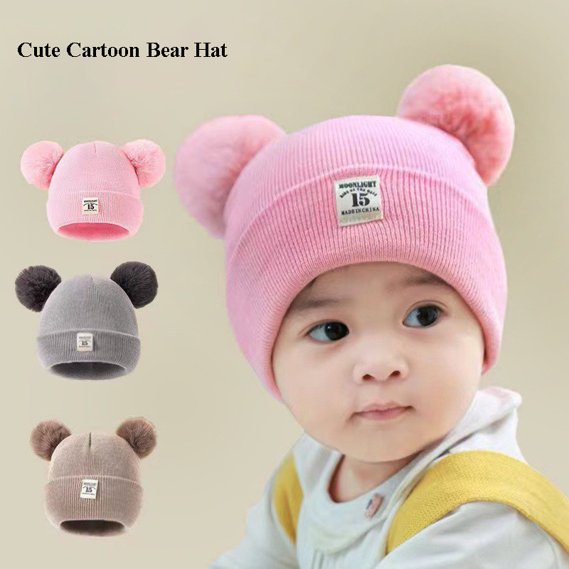 BEAR PATTERN WITH POMPOM-If you love cute little bears, make sure not to miss this hat!This cute baby hat features an adorable embroidered patch of a charming bear on front, perfectly complemented by two fluffy pom-poms on top. When your little one dons this hat, they will undoubtedly exude an irresistible cuteness, making it a perfect accessory for any playful outing or chilly day.