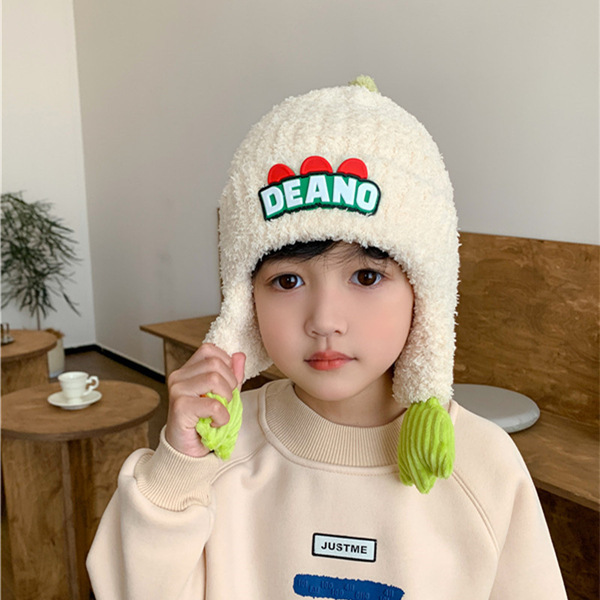 Autumn and winter baby hats for boys and girls, cute cartoon bear plush hats, warm hats with ear flaps, knitted hats