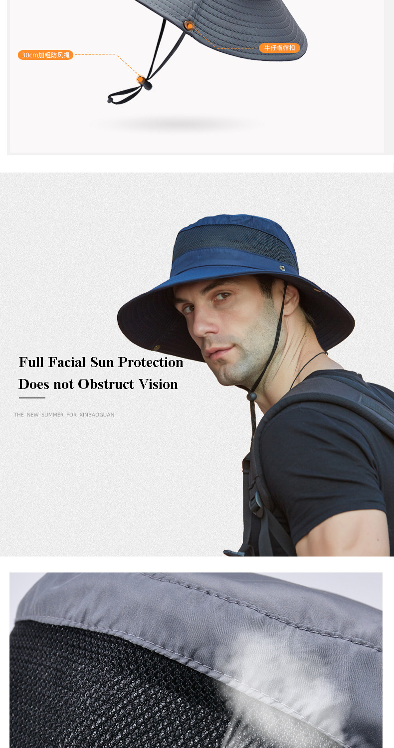 ONE SIZE FITS MOST - Our sun hat is suitable for men and women with a head girth between 22.4"-23.6" (57cm-60cm) as there has a adjustable elastic drawstring design on the back of hat. It also has an adjustable chin strap to hold the fishing hat in place on windy days.