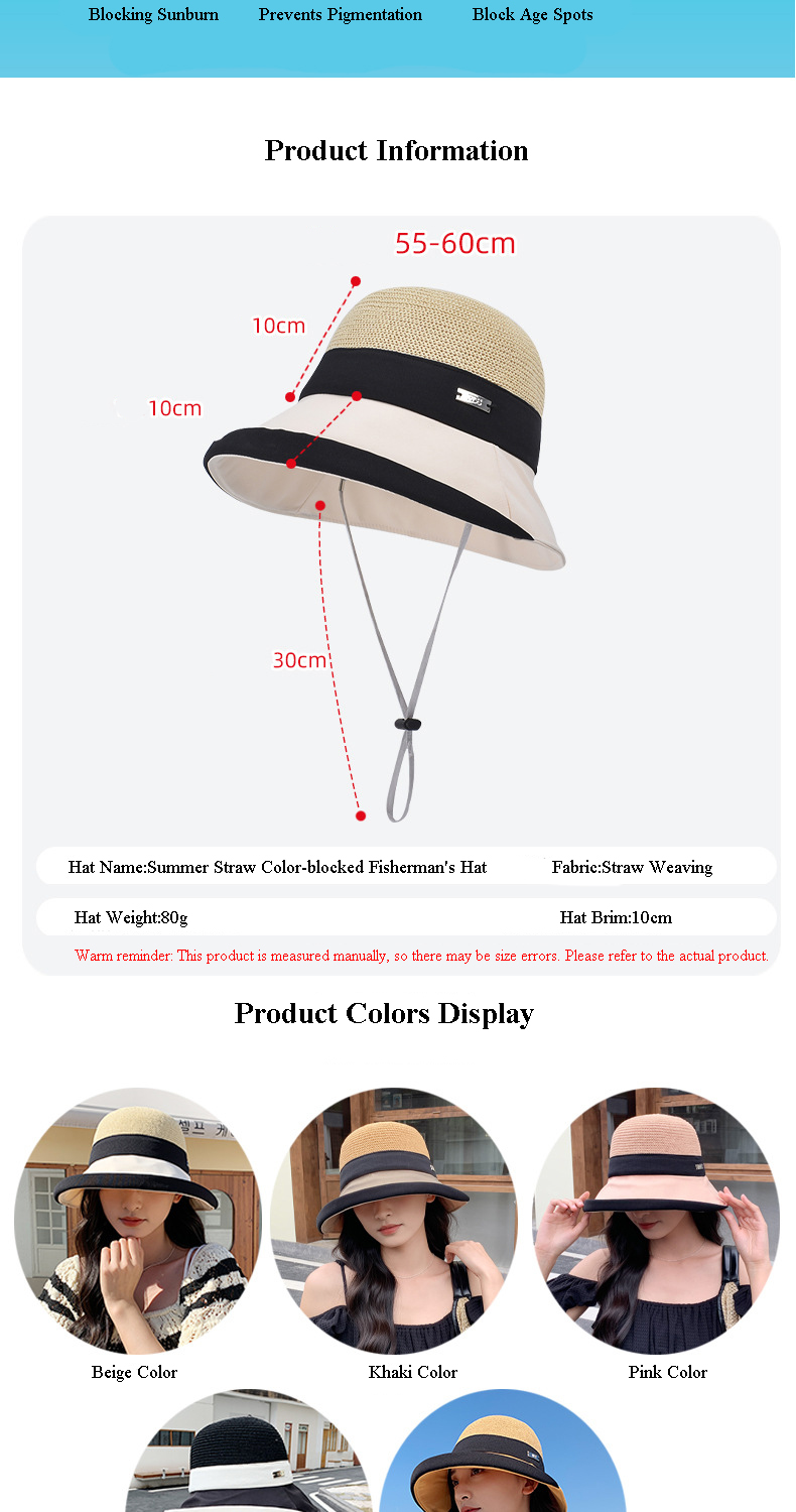 One Size Fits Most: Hat Circumference: 21"-23.6". Casual style sun hat, snug and cosy fit most women. Adjustable elastic buckle at the back of the fishing hat adjust the hat circumference to fit your head size comfort. Freely adjustable chin strap prevents uv sun hat from blowing off in the wind. It's necessary for beach, fishing, boating, travel or any outdoor activities.