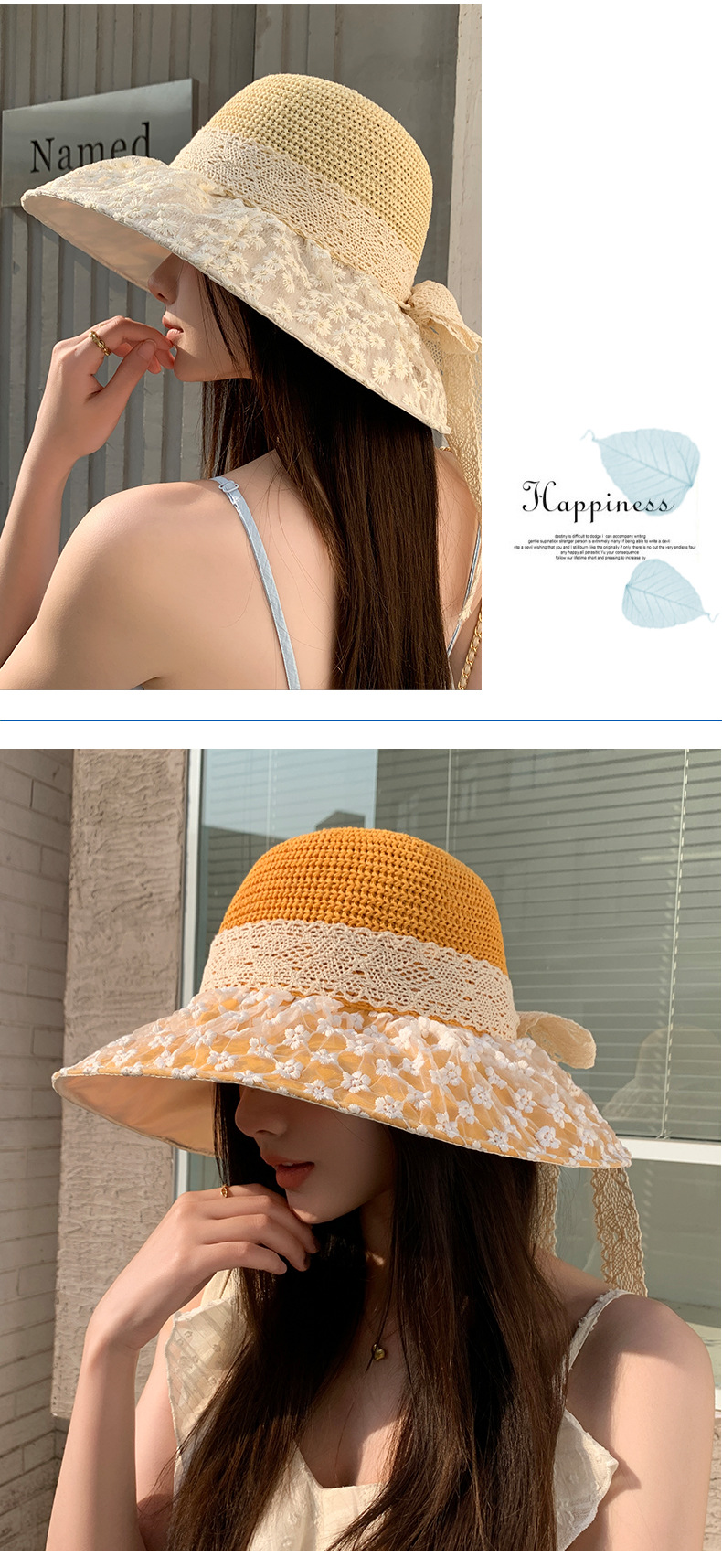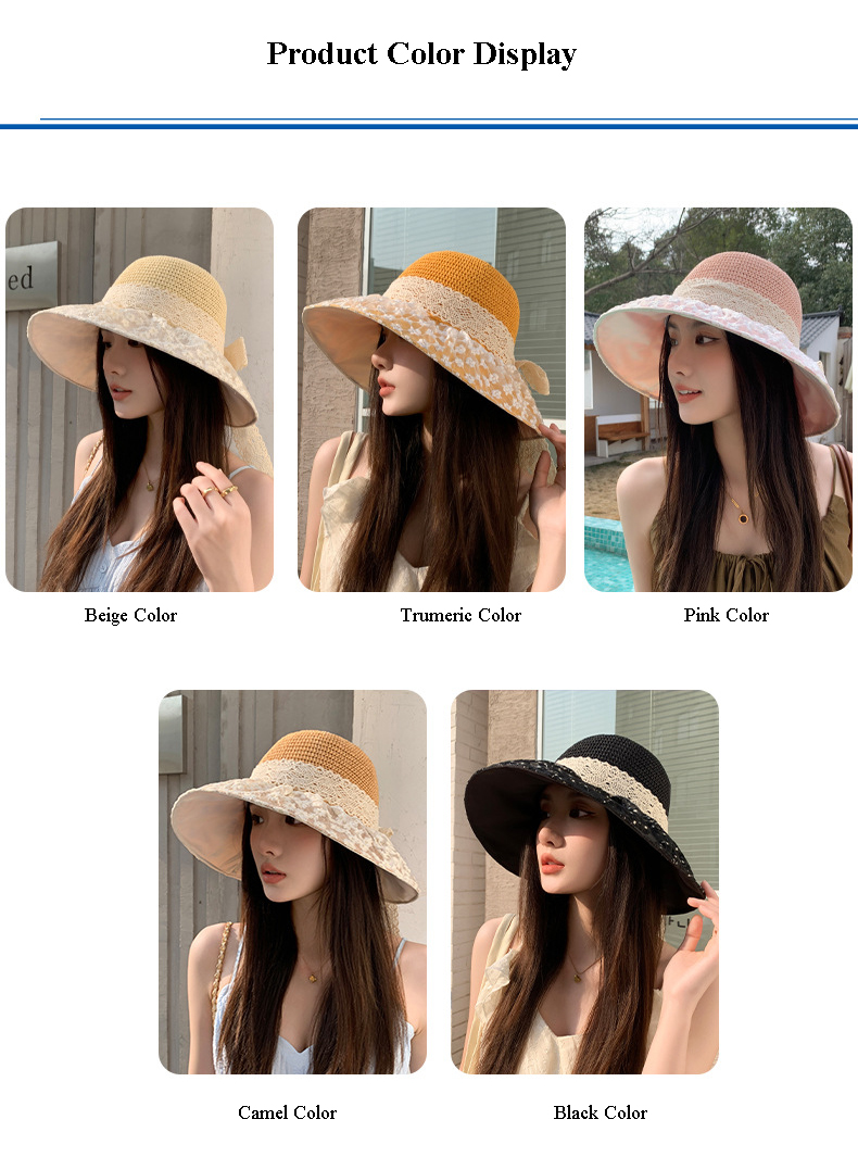 ONE SIZE BEST FITS: Casual style summer womens sun hat with a comfortable fit; Girth: 22"-23", Hat Height: 3.5", Adjustable elastic on the back of the floppy sun hats for women to adjust the girth to fit yours head size. The freely adjustable chin strap provides a comfortable fit and effectively prevents the UV protection cap from blowing away from the wind.