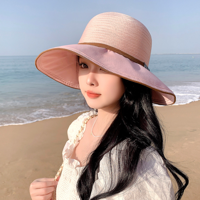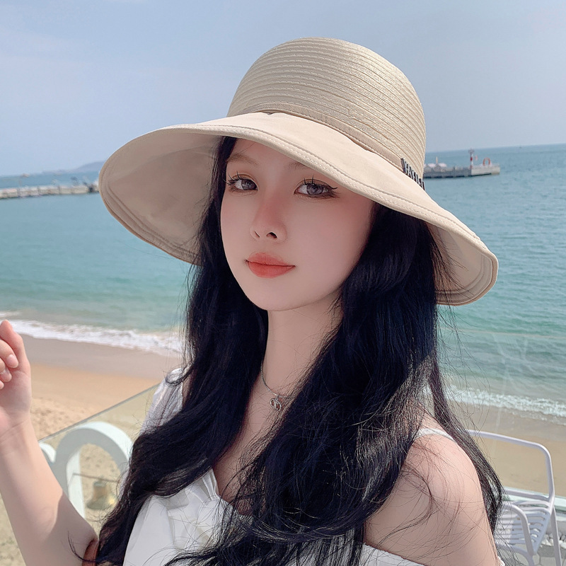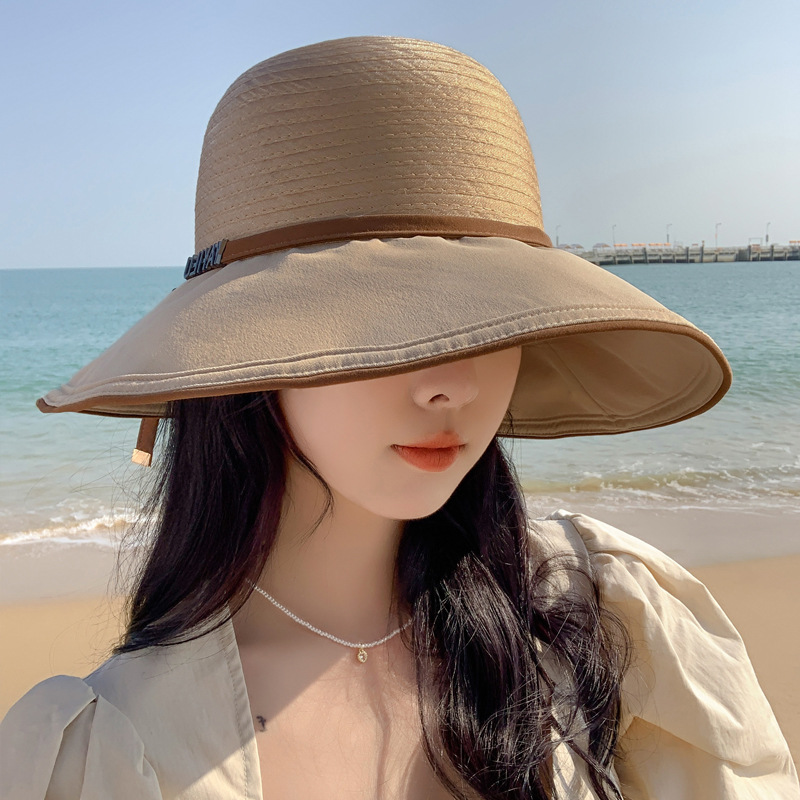New organza patchwork drawstring fisherman's hat, wide brim, sunshade hat, UV protection sun hat for women.