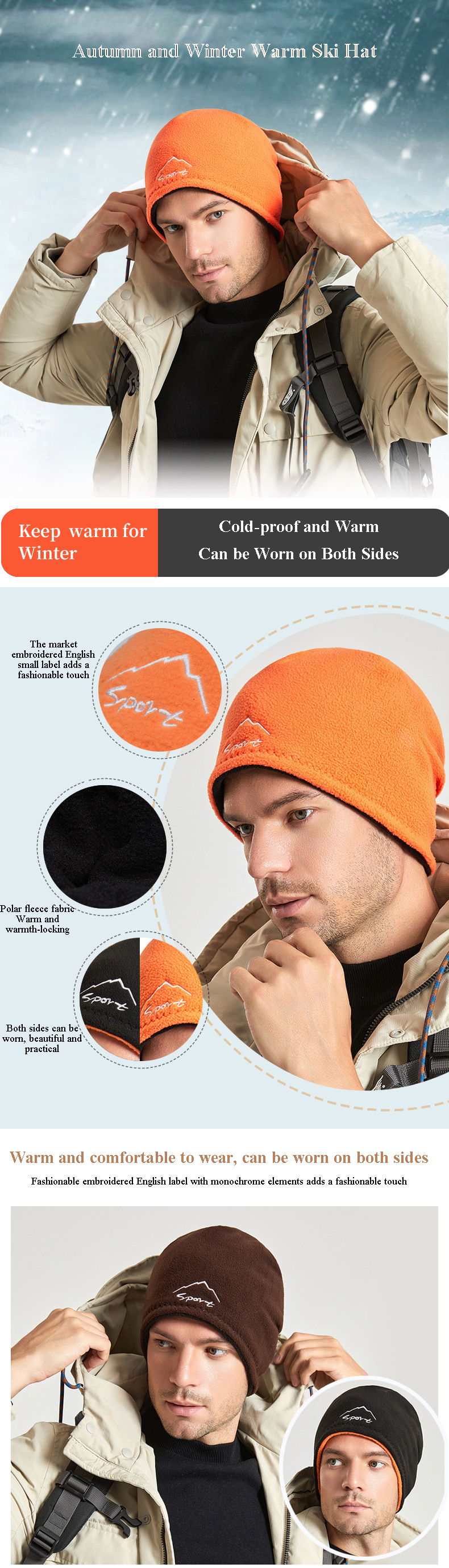 KEEP WARM: Double layers knitted beanie will keep you warm all-day. Keep your head warm covering up the ears and keep you cosy under the hat.