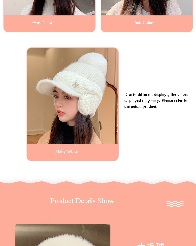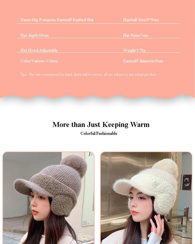 • Pom Pom Hat - The winter hat with a faux fur pompom,this puff ball is bigger,super cute and removable;The pom pom snaps securely in place when you want to wear it, and is easily removable when you don't;