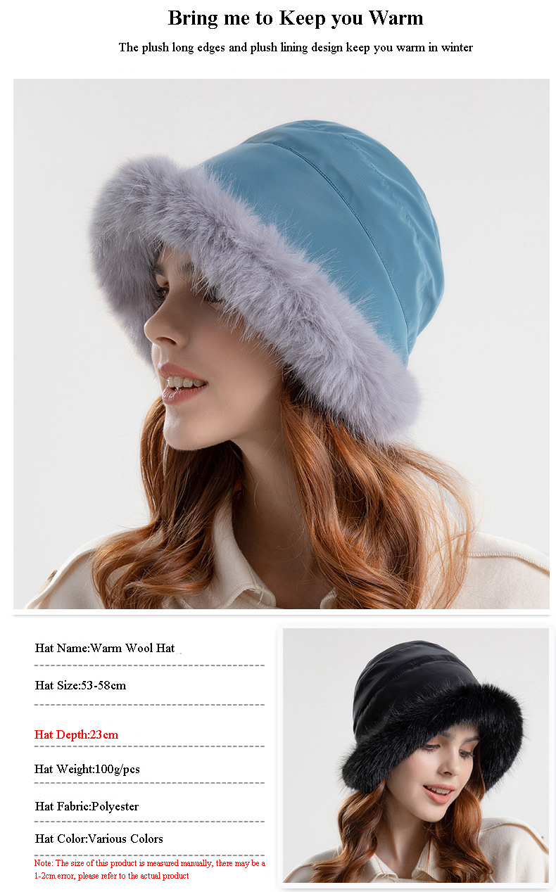【Quality Service Assurance】 The faux fur is fluffy. They are packed in plastic and deform during transport. The fur on faux bucket hats is compressed when packed, and the compressed fur is not fluffy. Please use a hairdryer (at home) to blow more, the fluffy bucket hat Will Regain Its Puffiness. If you have any questions, please contact me and we will deal with them immediately.