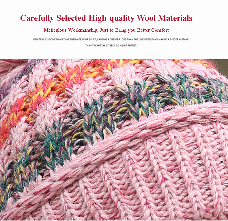 WASHING INSTRUCTIONS FOR BEANIE:1.Hand wash the beanie with warm water and add shampoo or neutral wool detergent before soaking for 10 minutes; 2. DO NOT wash the beanie with ordinary detergent or soap;3.DO NOT wash the pompom, cause washing will ruin the shape of the pompom;4. If machine washing, it is recommended to put it into a laundry bag to avoid damage.