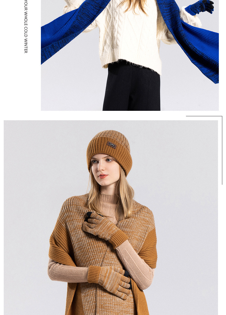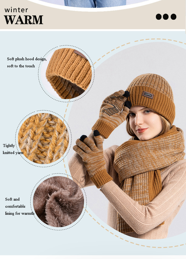 Classic Stylish Knitted: Precise knitting mixed yarn fashion beanie hat, scarf and gloves, creating a nice and fashionable look design, matches with any outfits like cardigans, sweaters, tops or other formal and casual winter clothes.