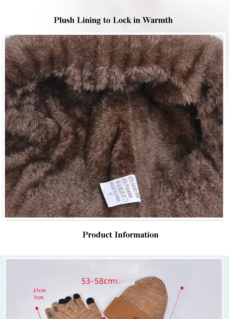 Warm Fleece linning: Different from most women's and men's beanie, scarf and gloves set, our hat, neck warmer and gloves set has thick soft fleece lining, enjoy extra warmth and protect you in the cold winter.