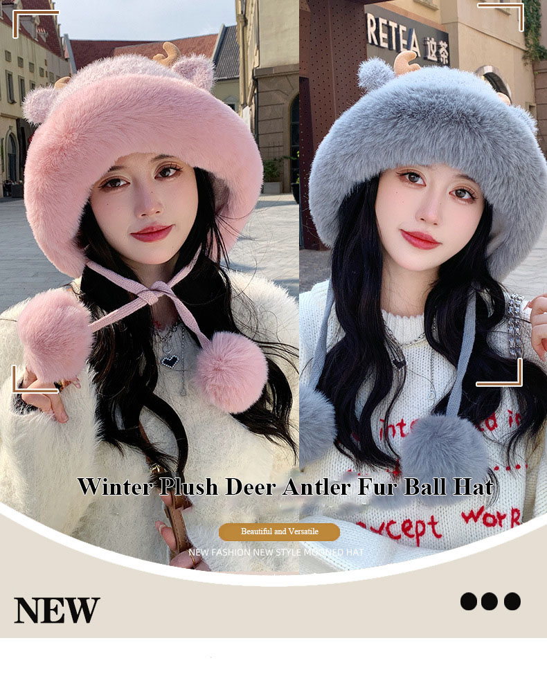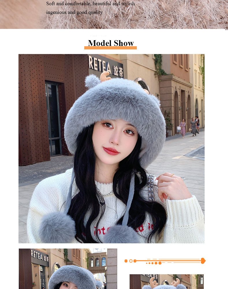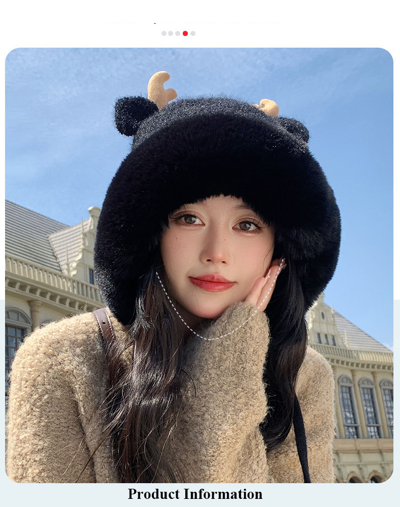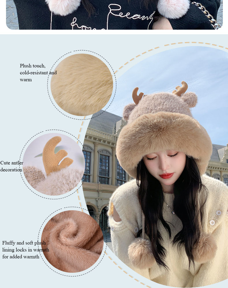 CUTE EARFLAP BEANIE CAP:The cute hooded beanie hat for women is adorned with cute reindeer antlers and furry 3 pom pom balls, adding a sweet and attractive touch to your look,earflap hood skull caps, protect your head face and ears. Just perfect and also makes you smile whenever you wearing it!