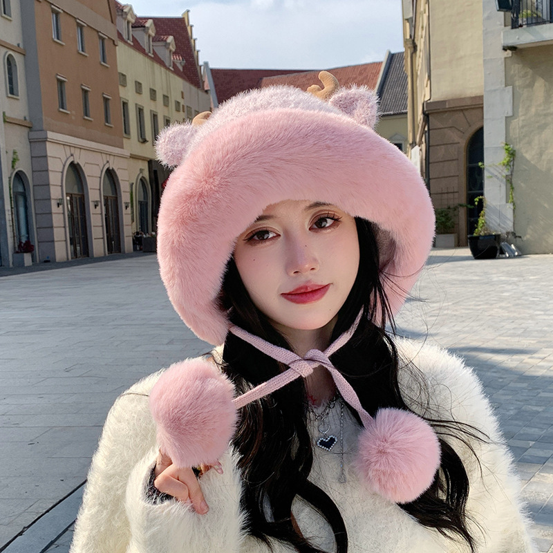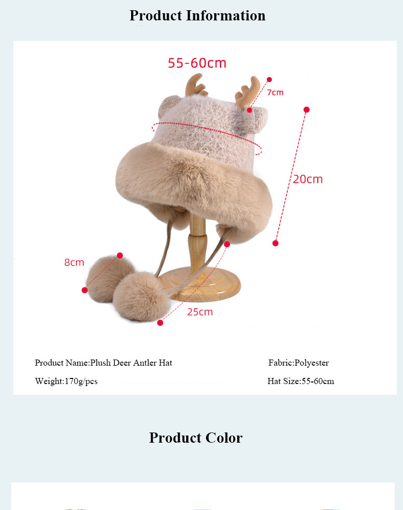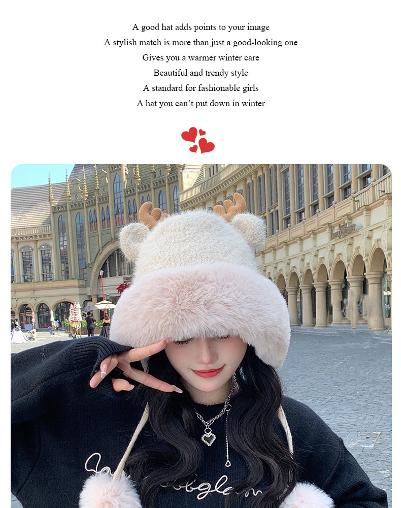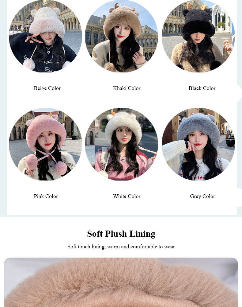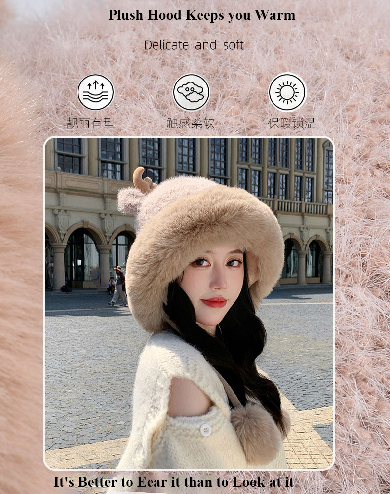 CUTE EARFLAP BEANIE CAP:The cute hooded beanie hat for women is adorned with cute reindeer antlers and furry 3 pom pom balls, adding a sweet and attractive touch to your look,earflap hood skull caps, protect your head face and ears. Just perfect and also makes you smile whenever you wearing it!