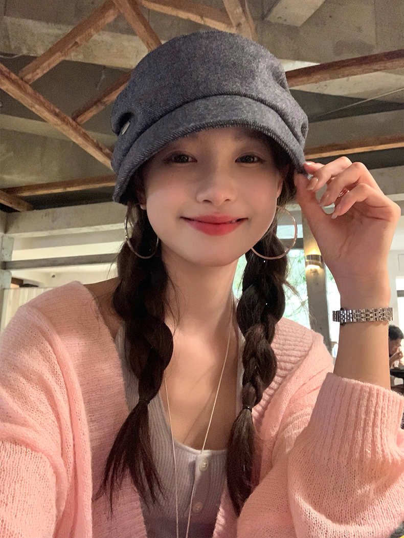 Retro pleated beret for women, autumn and winter, versatile newsboy cap, face-slimming octagonal painter's hat