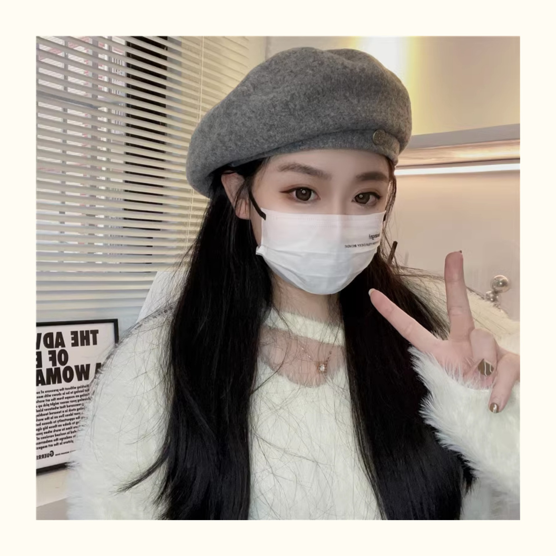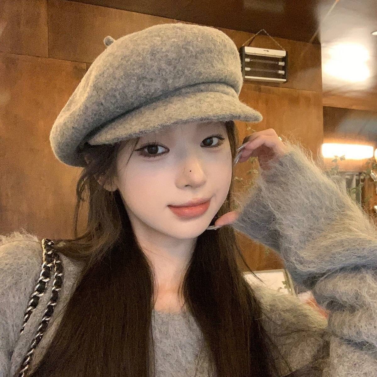 2025 Women's Wool Beret Hat with Large Head Circumference, New Autumn/Winter Korean Style, Popular Online, Makes Face Look Smaller, Warm Painter's Hat