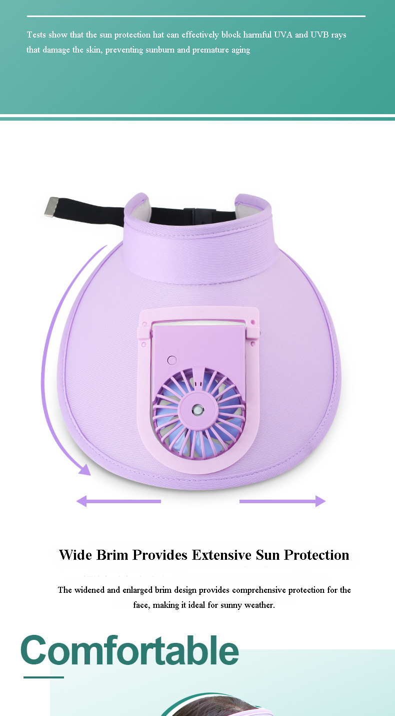 • Elegant Design: it combines sun visors with a fan, which means you can travel anywhere and feel cool without having to hold a fan in your hand, which makes you feel relaxed and shaded in the summer heat.