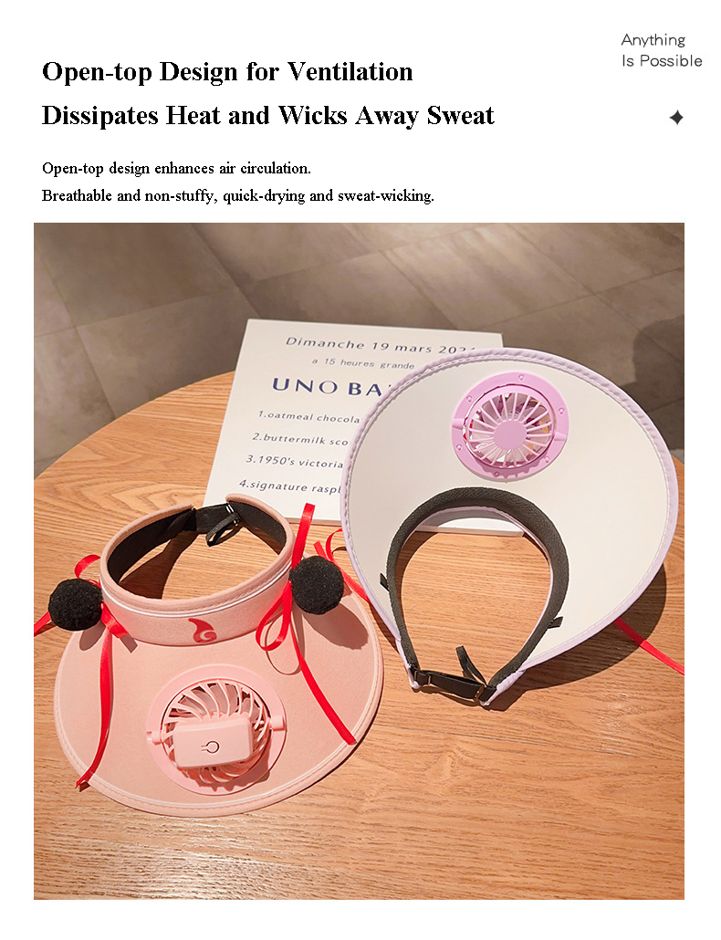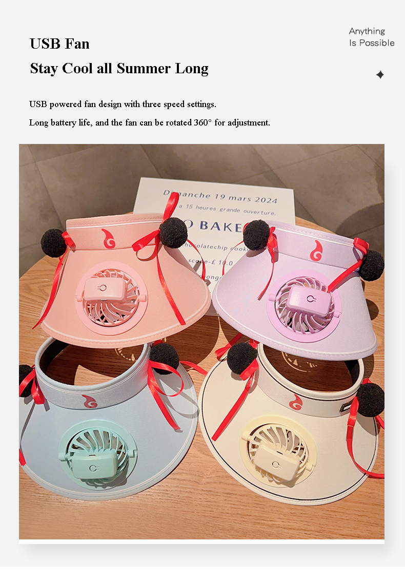 Cooling Fan Hat - Keep your child cool and protected with our innovative Kids' Sun Visor Hat with Built-in Fan. Features a built-in USB charging fan, provides a gentle breeze to keep your kids comfortable and prevent overheating, this hat is perfect for sunny days.