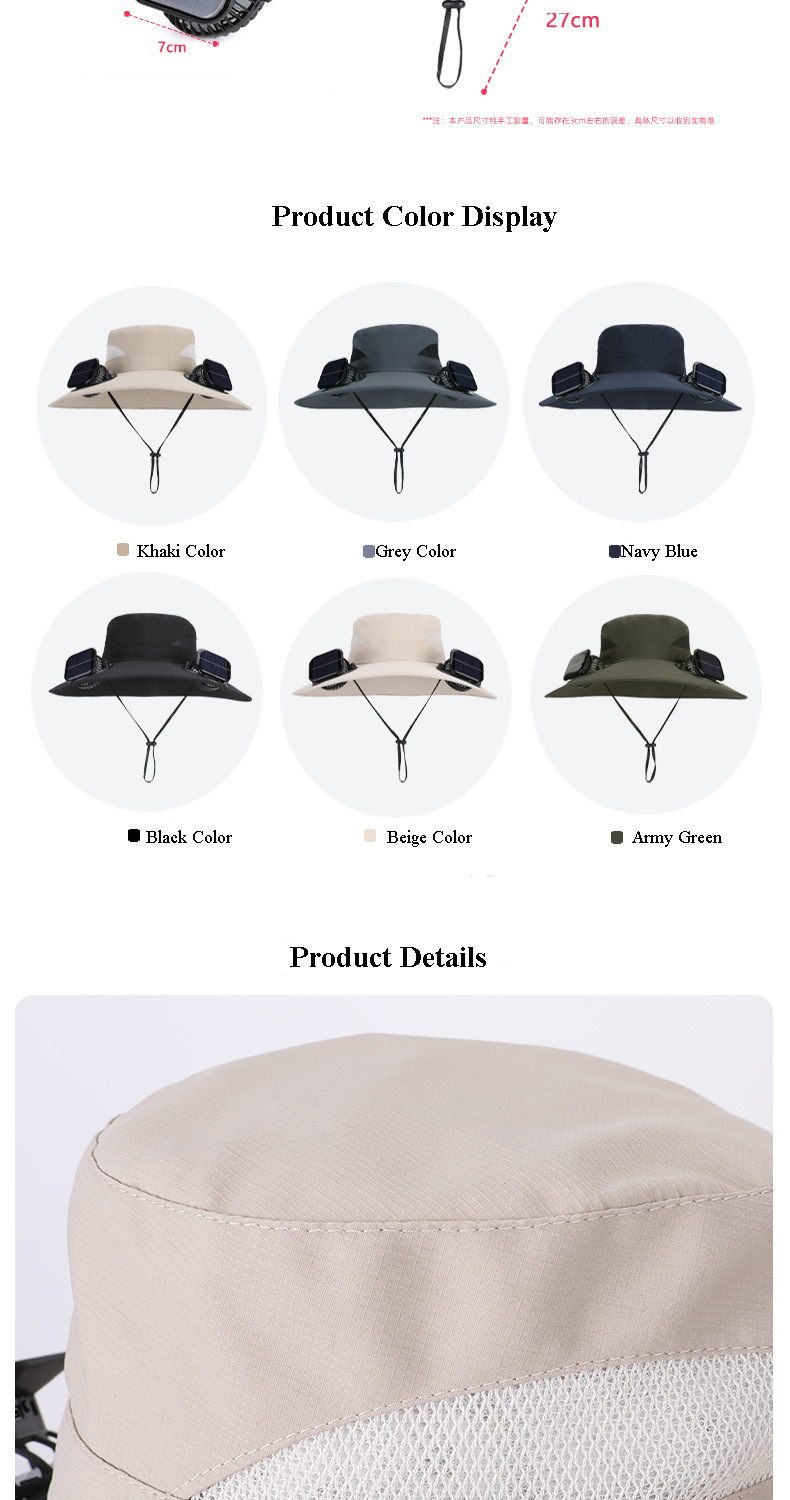 【Wide Brim Hat with Fan】: You will get 1 x wide brim sun hat, which is built-in 2 x solar fans, and 2 x USB cables. You can hang the outdoor fishing sun cap around your head and take it everywhere