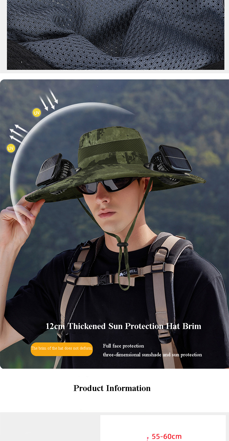 Easy to customize and maintain: Our sun hat with fan can rotate 180 ° towards the target face/neck. Quick release design for easy cleaning and replacement. Hats can be compactly folded into backpacks. It has a universal size that can be used by both men and women