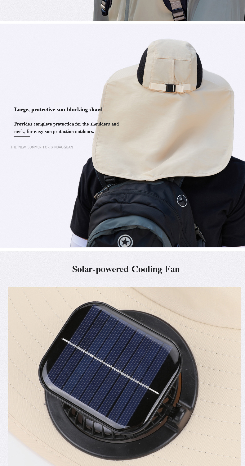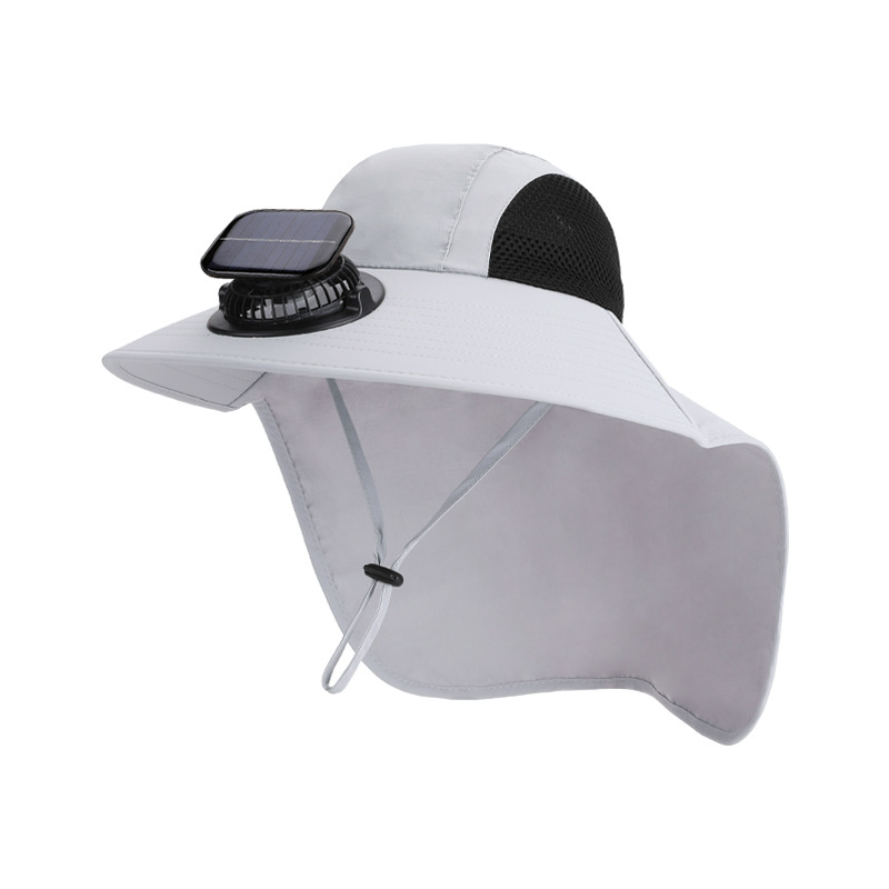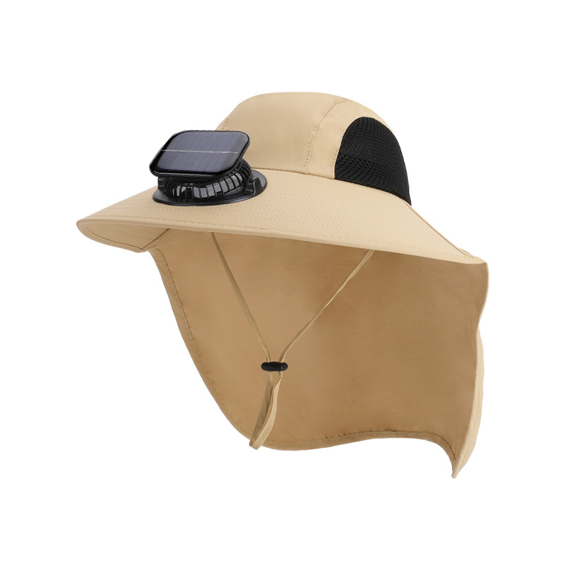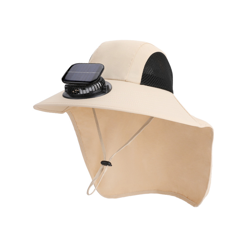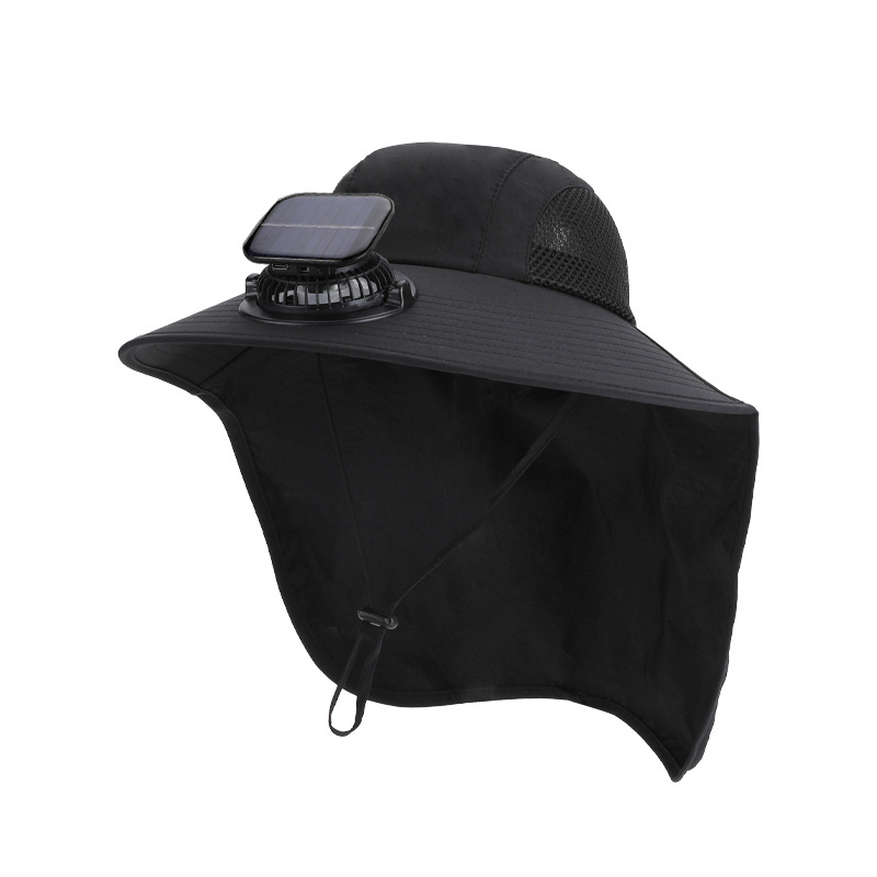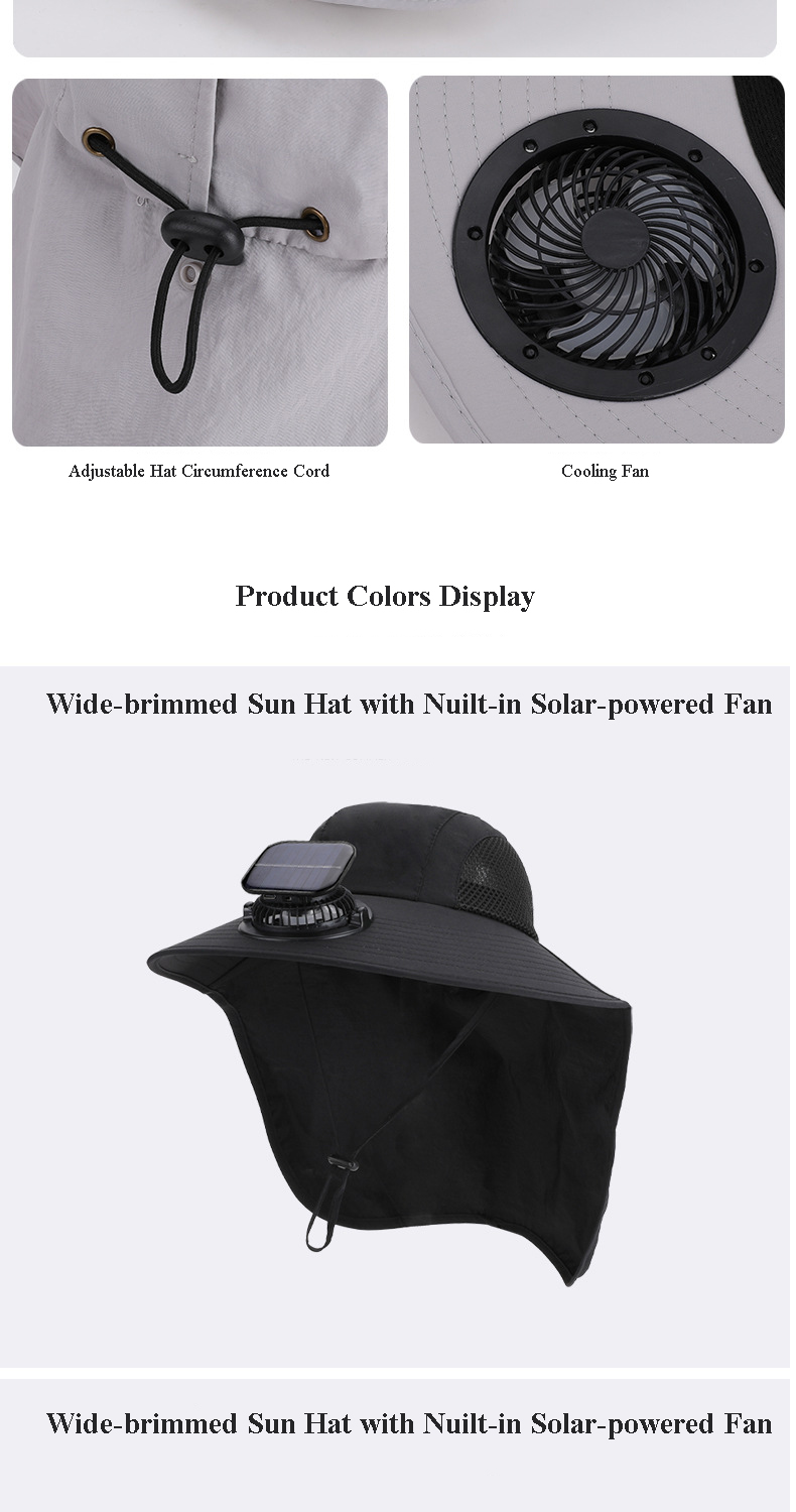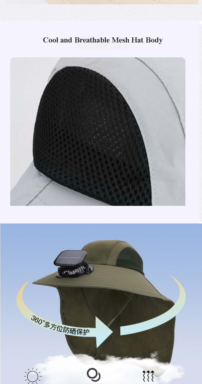 Wide Brim Hat with Dual Power Options – Equipped with a built-in 800mAh rechargeable battery and supports both solar and USB charging. The solar panel charges automatically under sunlight, providing eco-friendly and worry-free cooling on the go.