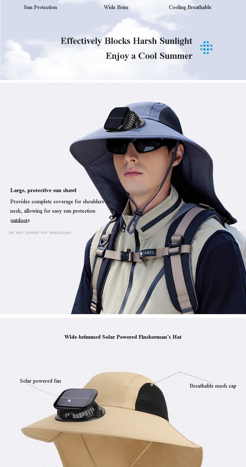 Hands-Free Solar Fan Hat – Features dual fans built into the sides of the brim, allowing you to enjoy hands-free cooling while hiking, biking, fishing, or gardening. Stay refreshed without interrupting your outdoor activities.