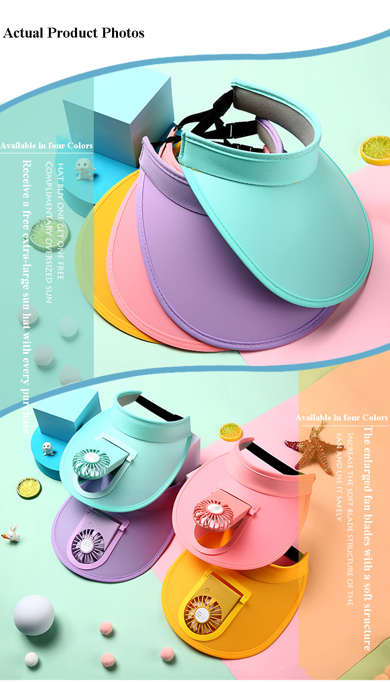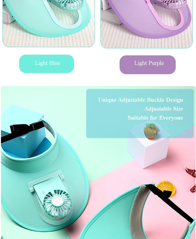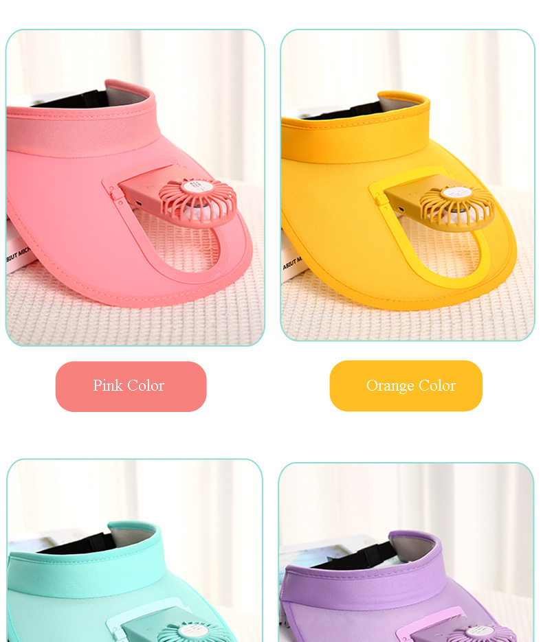 Fan Visor Hat : Fan Visor Hats made of Pvc material, odorless, fit forehead part with soft absorbent material, sweat absorption and non-slip. (Note: when cleaning the hat fan parts please use a wipe can, not directly soaked in water)