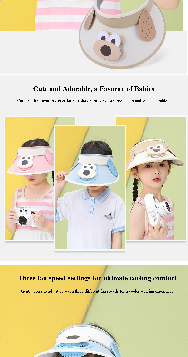 Cooling Fan Hat - Keep your child cool and protected with our innovative Kids' Sun Visor Hat with Built-in Fan. Features a built-in USB charging fan, provides a gentle breeze to keep your kids comfortable and prevent overheating, this hat is perfect for sunny days.