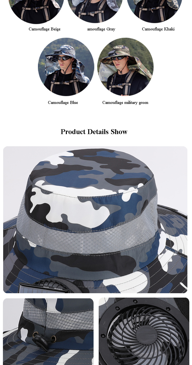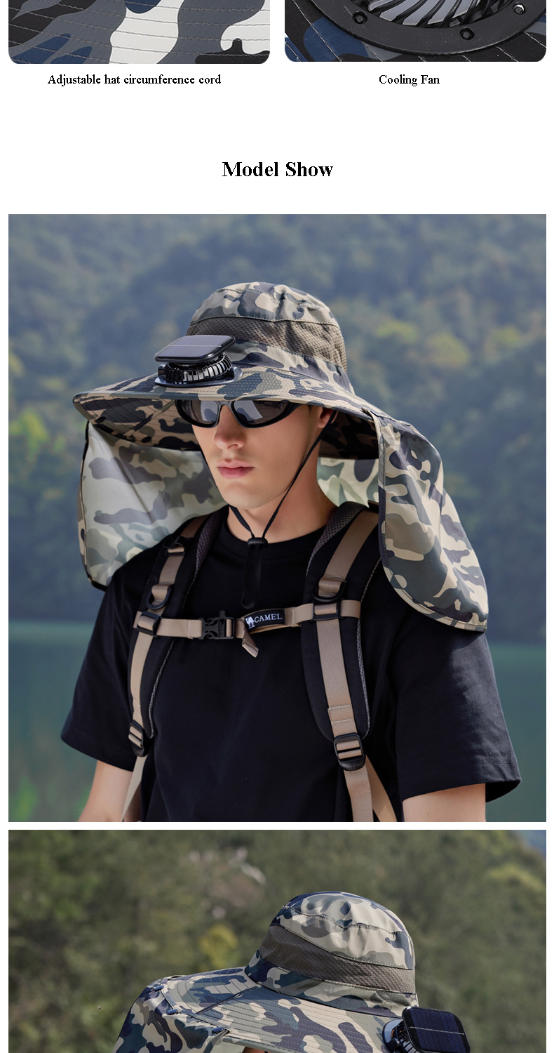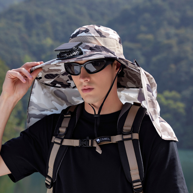 SUN-PROOF FABRIC DESIGN: Our sun hat with fan dries fast and blocks 98% of UV rays when the sun's out. Stylish and protective, it's your perfect companion for sweltering summer heat. Our wide brim outdoor polyester fishing hat could offer brief rain protection for you.