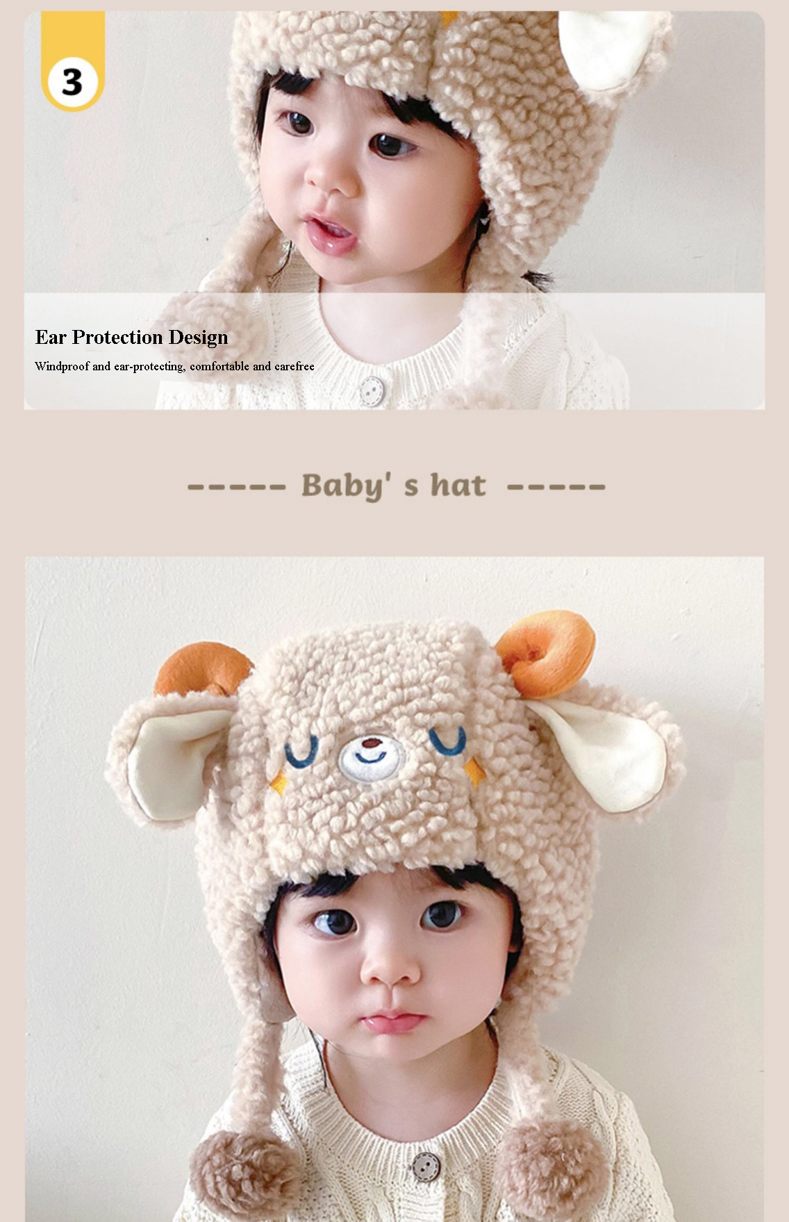【Satin Lined Beanie for Baby】Why Satin Lined? Because the dry air in cold weather is damaging our kid's hair and scalp everyday, a well-known fact is, satin can retain moisture in hair and minimize friction. A satin lined winter hat will keep baby's hair from drying out and getting tangled in winter; Moreover, the satin lining can also smooth children's hair with its silk-soft surface, so they get static free and has less split ends and breakage.