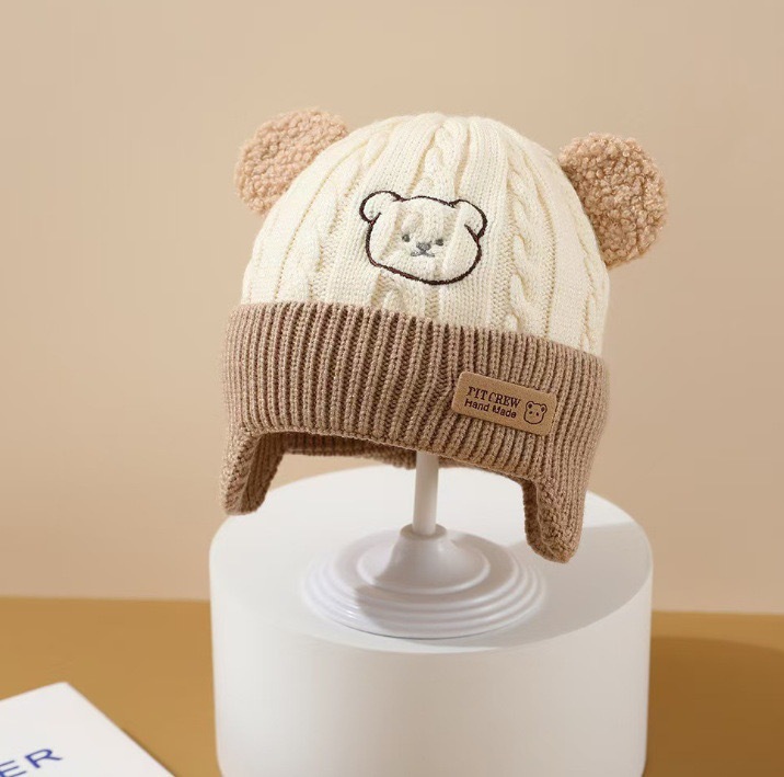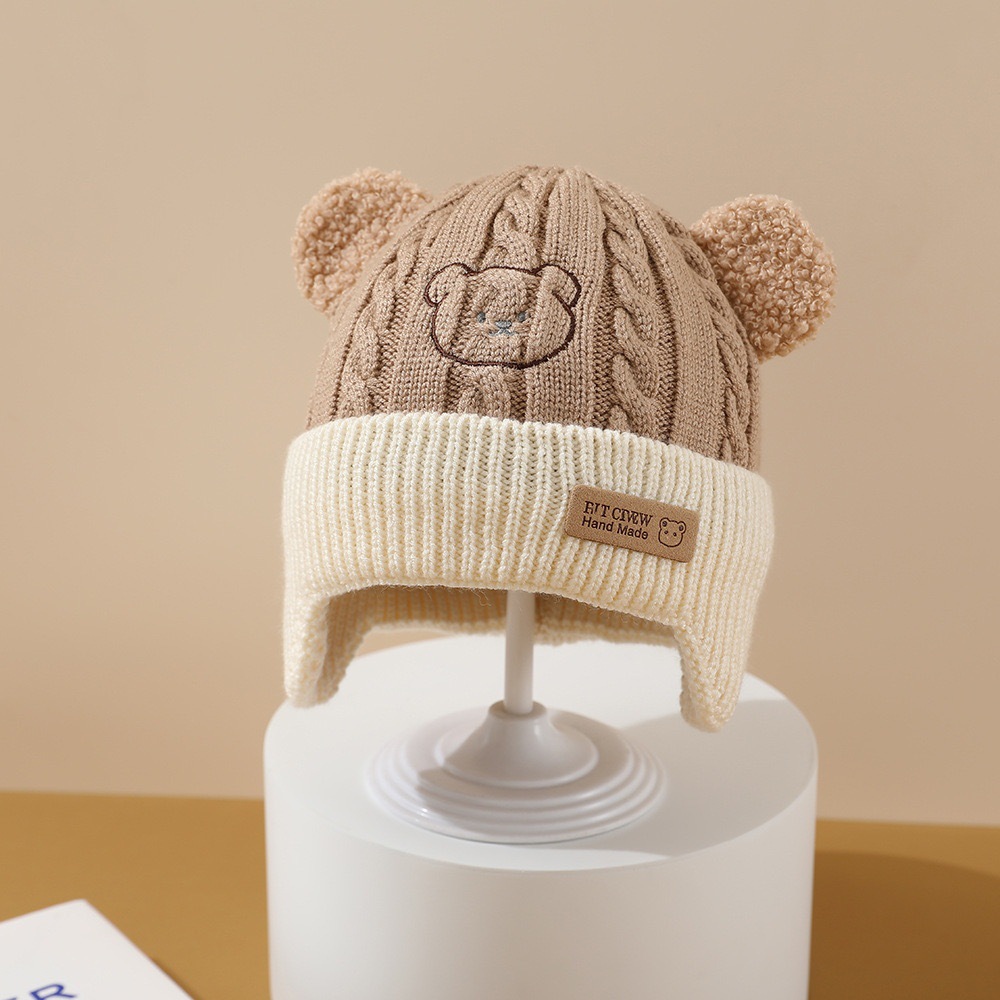 BEAR PATTERN WITH POMPOM-If you love cute little bears, make sure not to miss this hat!This cute baby hat features an adorable embroidered patch of a charming bear on front, perfectly complemented by two fluffy pom-poms on top. When your little one dons this hat, they will undoubtedly exude an irresistible cuteness, making it a perfect accessory for any playful outing or chilly day.