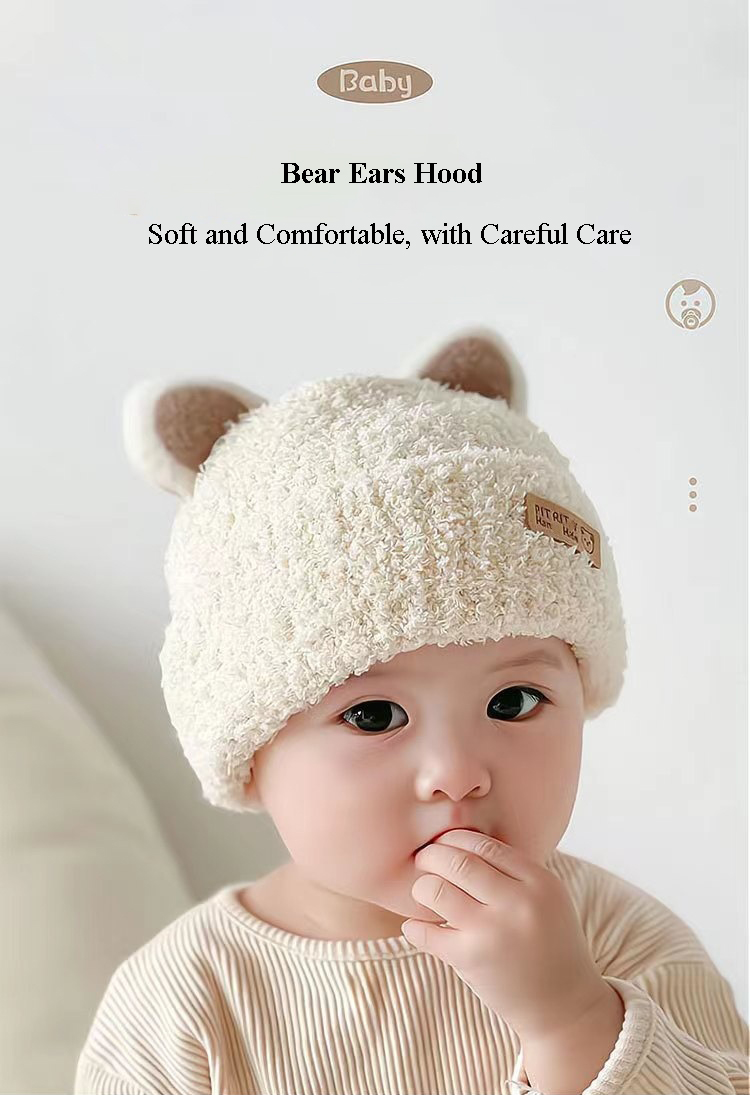 BEAR PATTERN WITH POMPOM-If you love cute little bears, make sure not to miss this hat!This cute baby hat features an adorable embroidered patch of a charming bear on front, perfectly complemented by two fluffy pom-poms on top. When your little one dons this hat, they will undoubtedly exude an irresistible cuteness, making it a perfect accessory for any playful outing or chilly day.