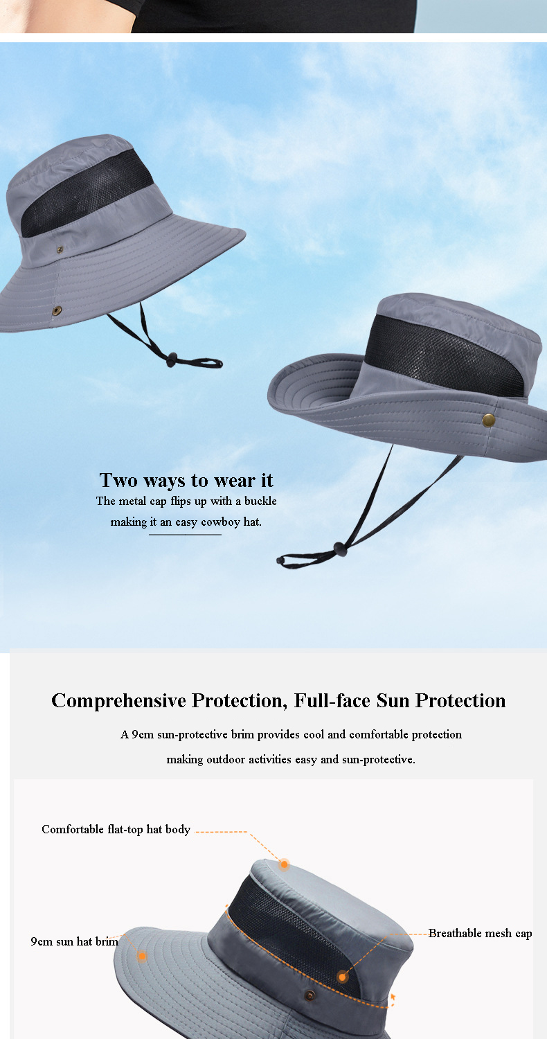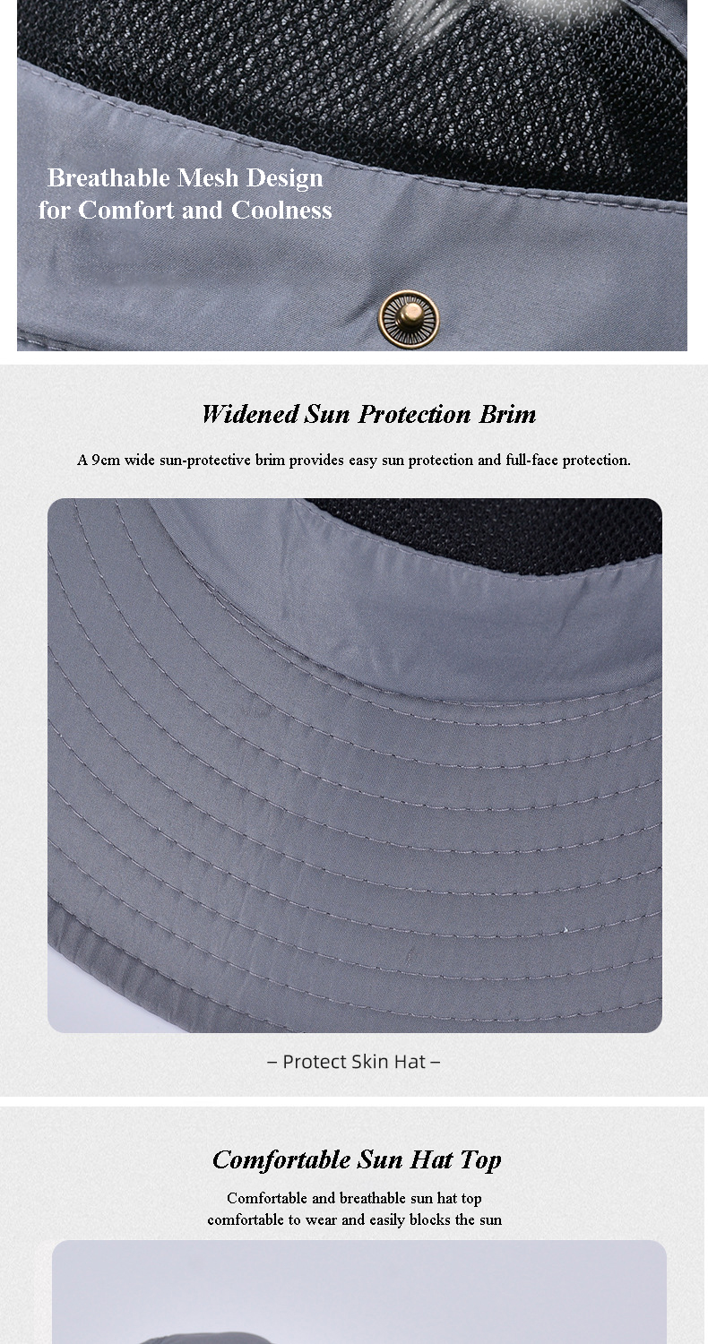 BREATHABLE MESH - The head of the bucket hat is designed with a fashionable and comfortable breathable mesh, which can better dissipate heat in hot weather, keeping you comfortable and not stuffy.