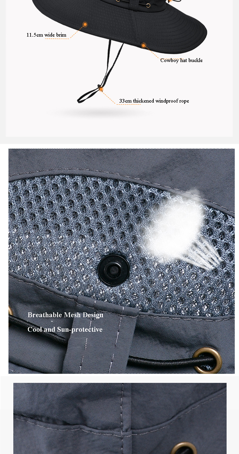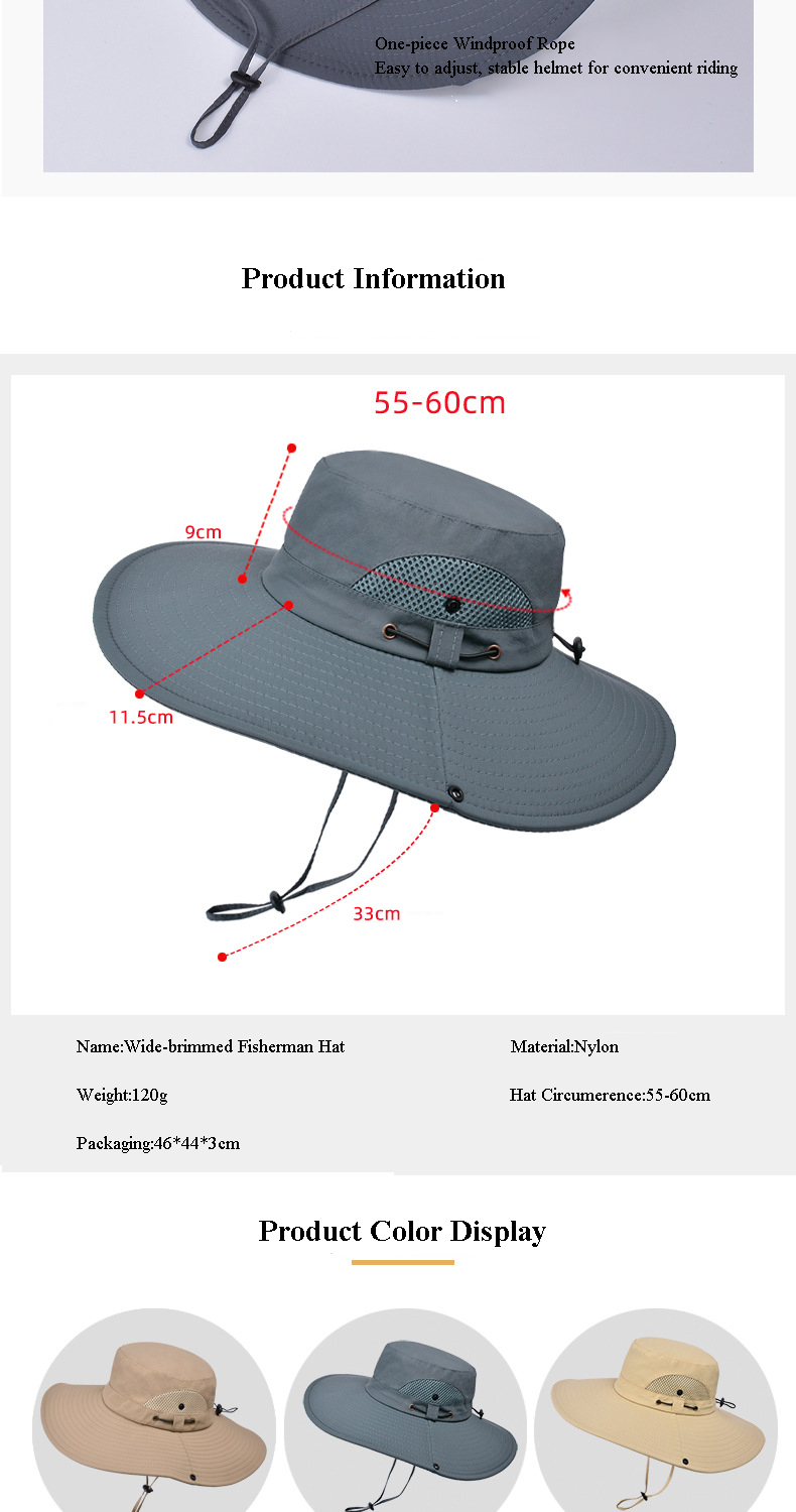 Fisherman's Hat for Men, Summer, Wide-brimmed, Sunshade, Outdoor Hat, Hiking, Sun Protection, Breathable, Suitable for Cycling