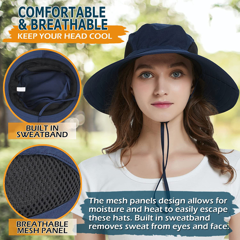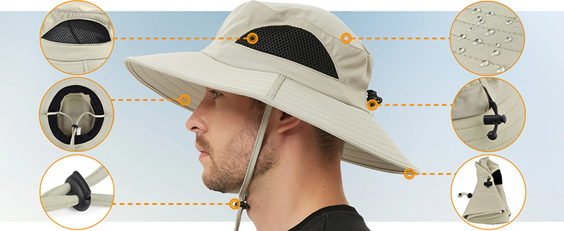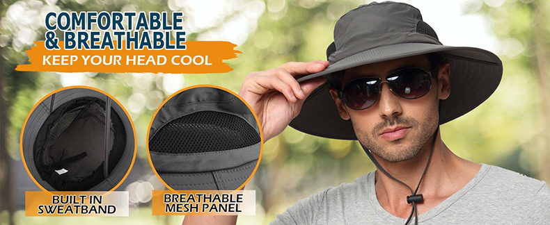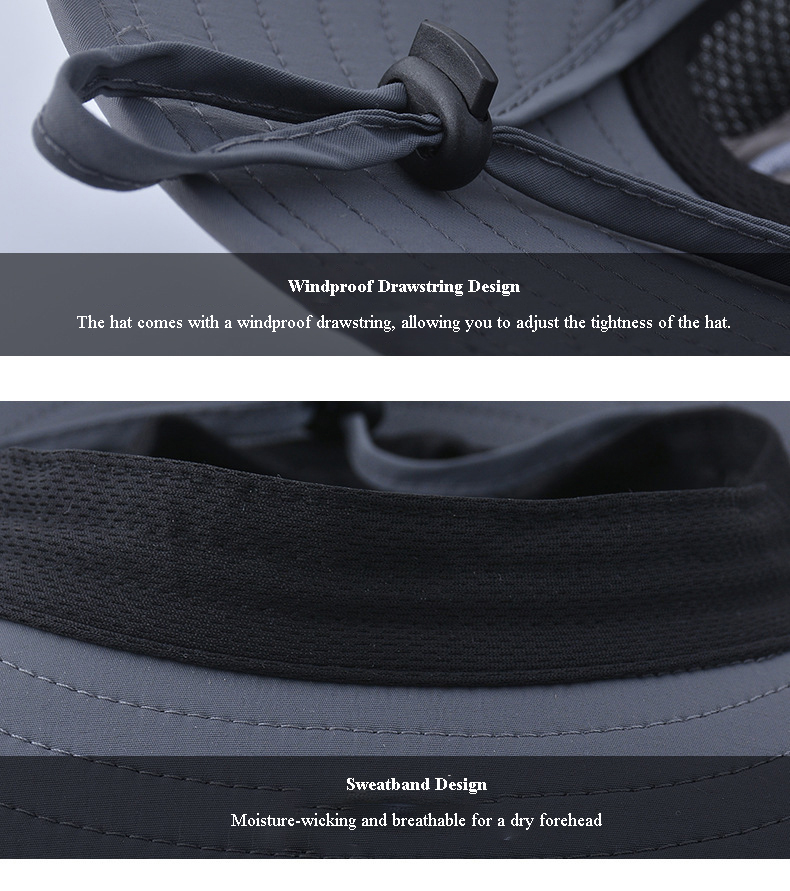ONE SIZE FITS MOST - Our sun hat is suitable for men and women with a head girth between 22.4"-23.6" (57cm-60cm) as there has a adjustable elastic drawstring design on the back of hat. It also has an adjustable chin strap to hold the fishing hat in place on windy days.