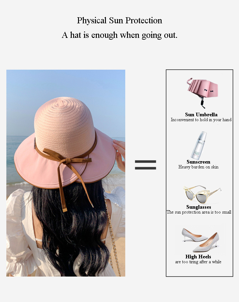 UPF 50+ Premium Sun Protection: This sun hat for women tested with UPF 50+ protection. 3.5" Widen brim design will provide you a 360° protection from harsh UV rays and sunshine for your face, neck, and ears. Go out and enjoy the moments with this womens beach hat without a worry with harmful UV rays.